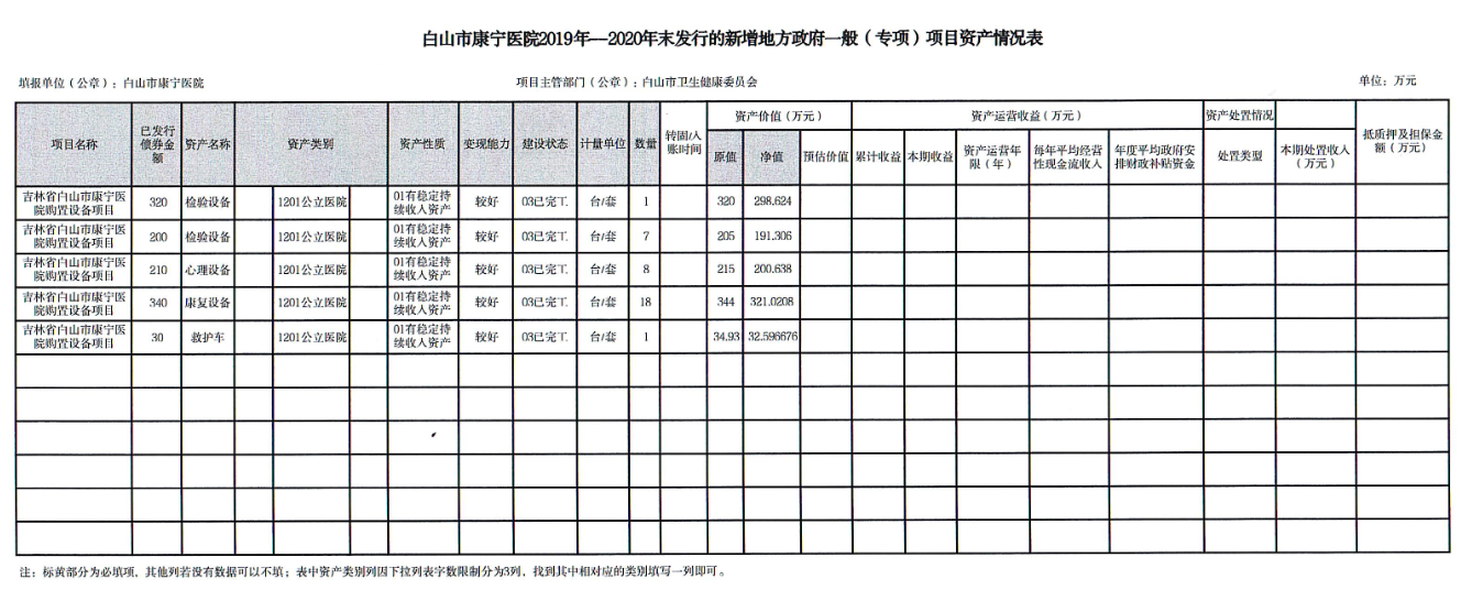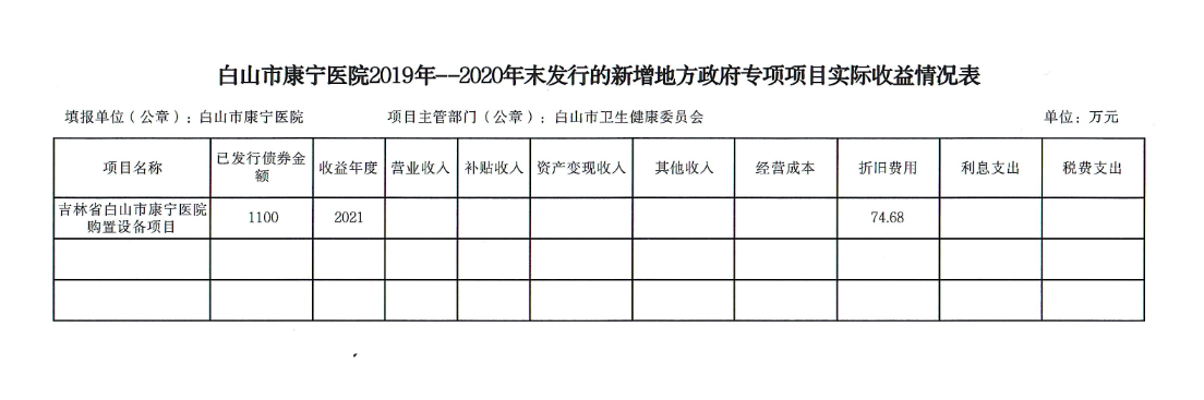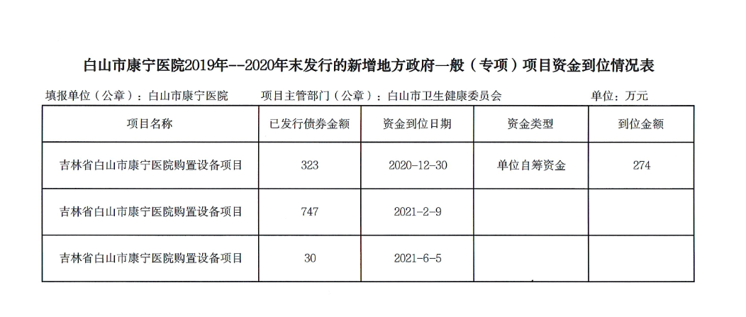 吉林省白山市康宁医院购置设备项目(2020年第7批新增地方政府专项债券资金)信息公示