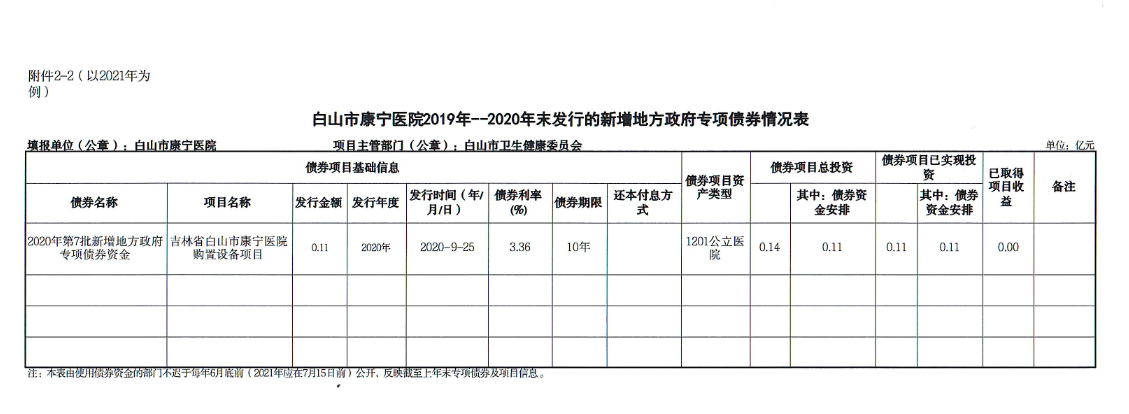 现将吉林省白山市康宁医院购置设备项目(2020年第7批新增地方政府专项债券资金)信息公示如下: