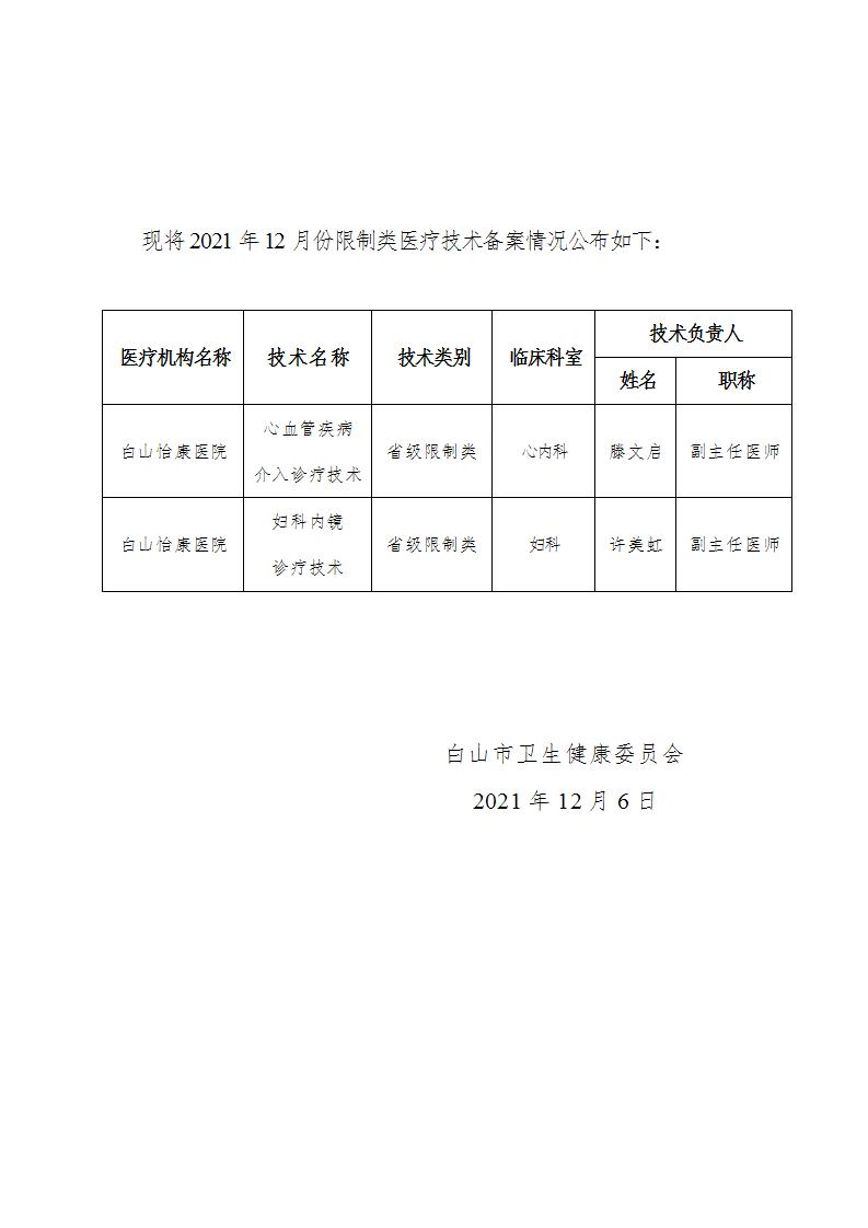 2021年12月份限制类医疗技术备案情况