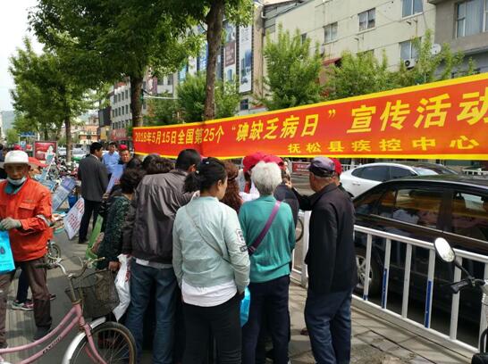 5月15日是我国第25个防治碘缺乏病日,为深入贯彻落实党的十九大精神和习近平总书记在全国卫生与健康大会上的讲话精神,推动实现《“健康中国2030”规划纲要》和《“十三五”全国地方病防治规划》有关目标,进一步提高公众对碘缺乏病防治工作的认识,加快推进健康中国建设,提高抚松人民防治碘缺乏病知识的知晓率。2018年5月15日上午,抚松县卫生计生局、县疾控中心联合县盐务局、县地病办、县电视台等相关单位在抚松镇抚松大街开展防治“碘缺乏病日”健康宣传活动。