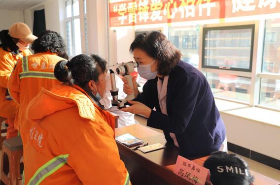在随后的义诊环节,大家在志愿者们合理安排下井然有序地排队,登记就诊。专家们分工协作,量血压、测血糖、心电检查、超声检查,针对工人们的专科就诊需要,现场专家们还开展了眼底镜检查及康复理疗手法治疗。专家们逐一对她们进行耐心的询问、查体和解答,有的还贴心地在就诊手册上留下意见,指导她们下一步如何治疗,并提醒何时复诊。耐心细致的诊查,浅显易懂的指导如旭日春风,温暖环卫工人们的心。