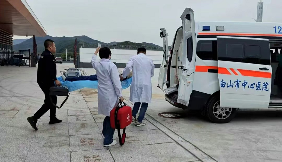 白山市120急救中心接到指令后,迅速派出救护车抵达现场。急救人员立即对患者进行生命体征评估,随即展开标准化抢救:建立静脉通路、实施心肺复苏、开展心电监护……快速判断其为"急性广泛前壁心肌梗死"。经过紧张有序的急救操作,患者成功恢复自主心跳,被平稳转运至救护车,紧急送往医院进行进一步治疗。